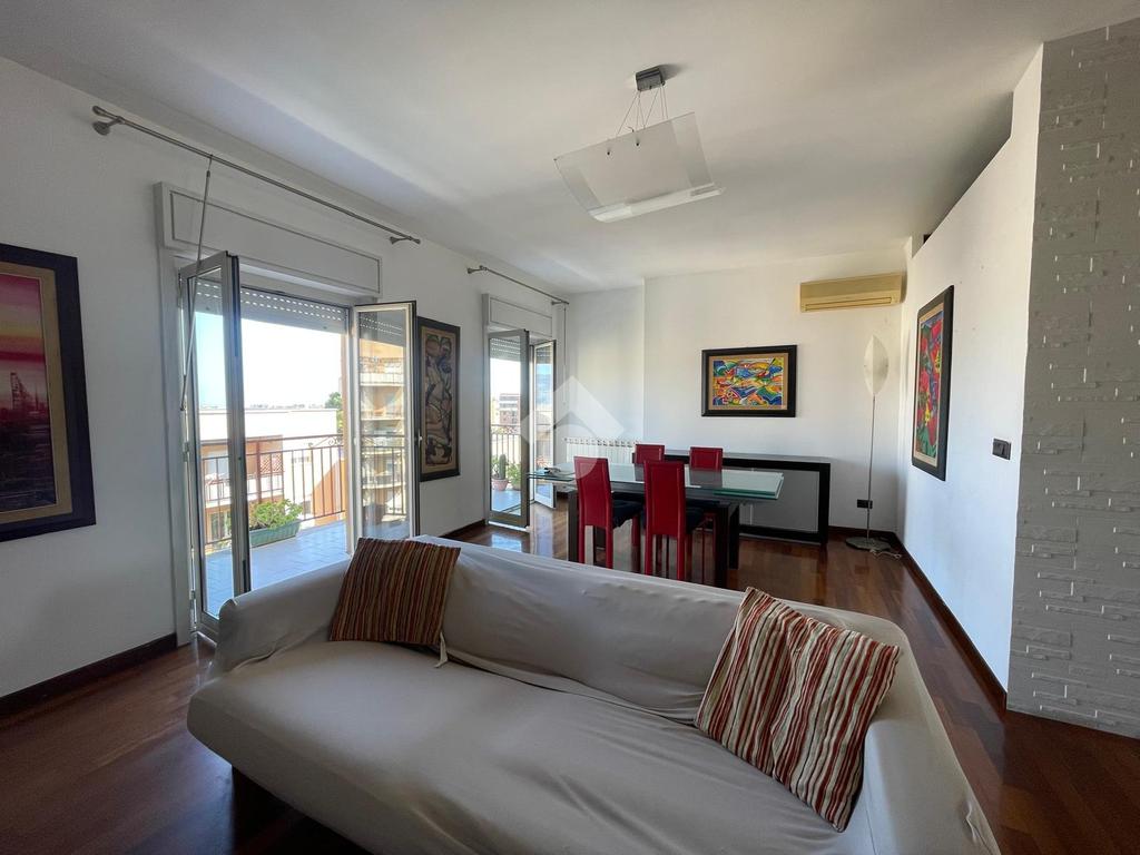 Ingresso su salone ed attigua cucina abitabile con grande porta a vetri scorrevole che all'occorrenza rende i due ambienti unico open-space. Due camere da letto , wc con ampio piatto doccia e wc con tradizionale vasca da c'è anche una terza piccola cameretta ricavata dal restringimento del salone che resta comunque un ambiente vivibile.